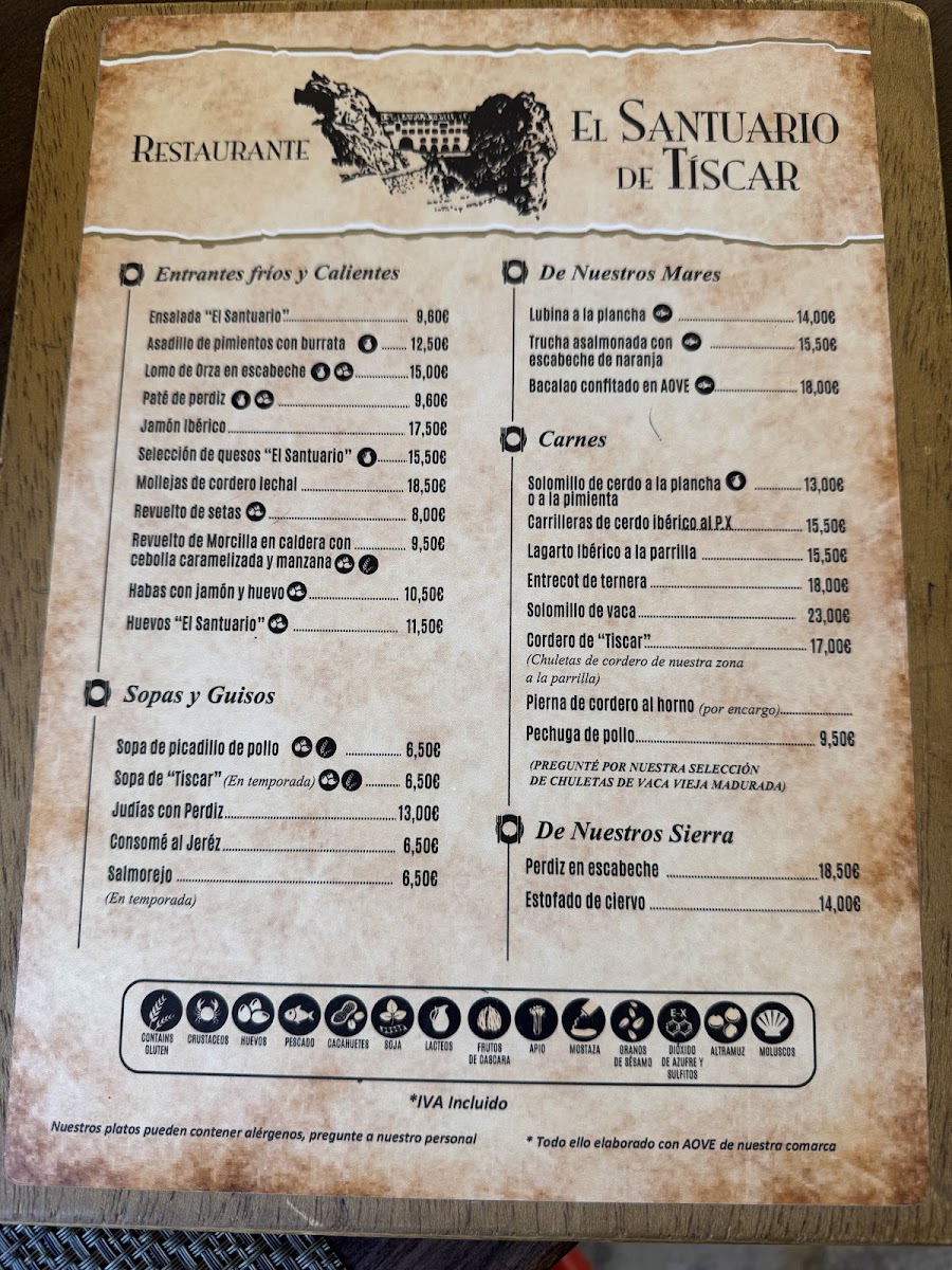 At Restaurante El Santuario De Tíscar, the menu strikes a careful balance between traditional Andalusian flavors and inventive twists that elevate familiar ingredients. The rich, slow-cooked Carrilleras melt in the mouth, offering a depth of flavor that speaks to the kitchen’s mastery of classic techniques. Meat lovers will be equally impressed by the tender Chuletas de Cordero and the succulent Lagarto Ibérico, each prepared with precision to highlight the natural taste of the cuts. Hearty dishes such as Alubias Con Perdiz and Habitas Con Jamón showcase the region’s rustic roots, while the creamy, indulgent Solomillo Al Roquefort delivers a luxurious touch. Lighter yet flavorful options, including Revuelto de Setas and the vibrant Tartar de Trucha Asalmonada Con Mango Y Aguacate, provide freshness and balance, demonstrating the kitchen’s versatility. Every dish reflects careful attention to both ingredient quality and presentation, resulting in a menu that feels cohesive yet dynamic. Whether savoring traditional favorites or sampling more inventive plates, diners are treated to an experience where each offering is thoughtfully executed, making the menu of Restaurante El Santuario De Tíscar a compelling celebration of local cuisine.